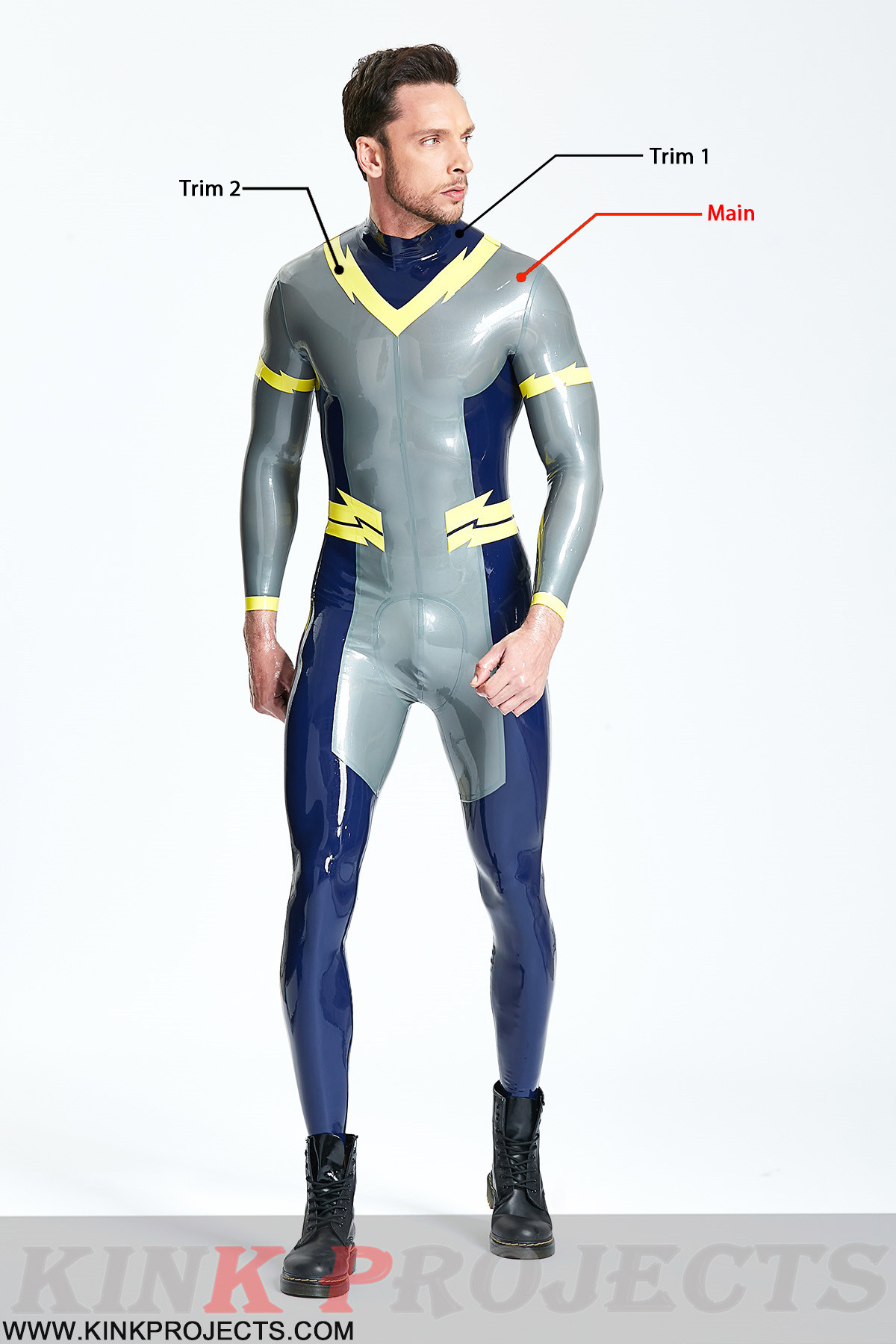 - Center 3-way back zip through crotch to front ON REQUEST only;