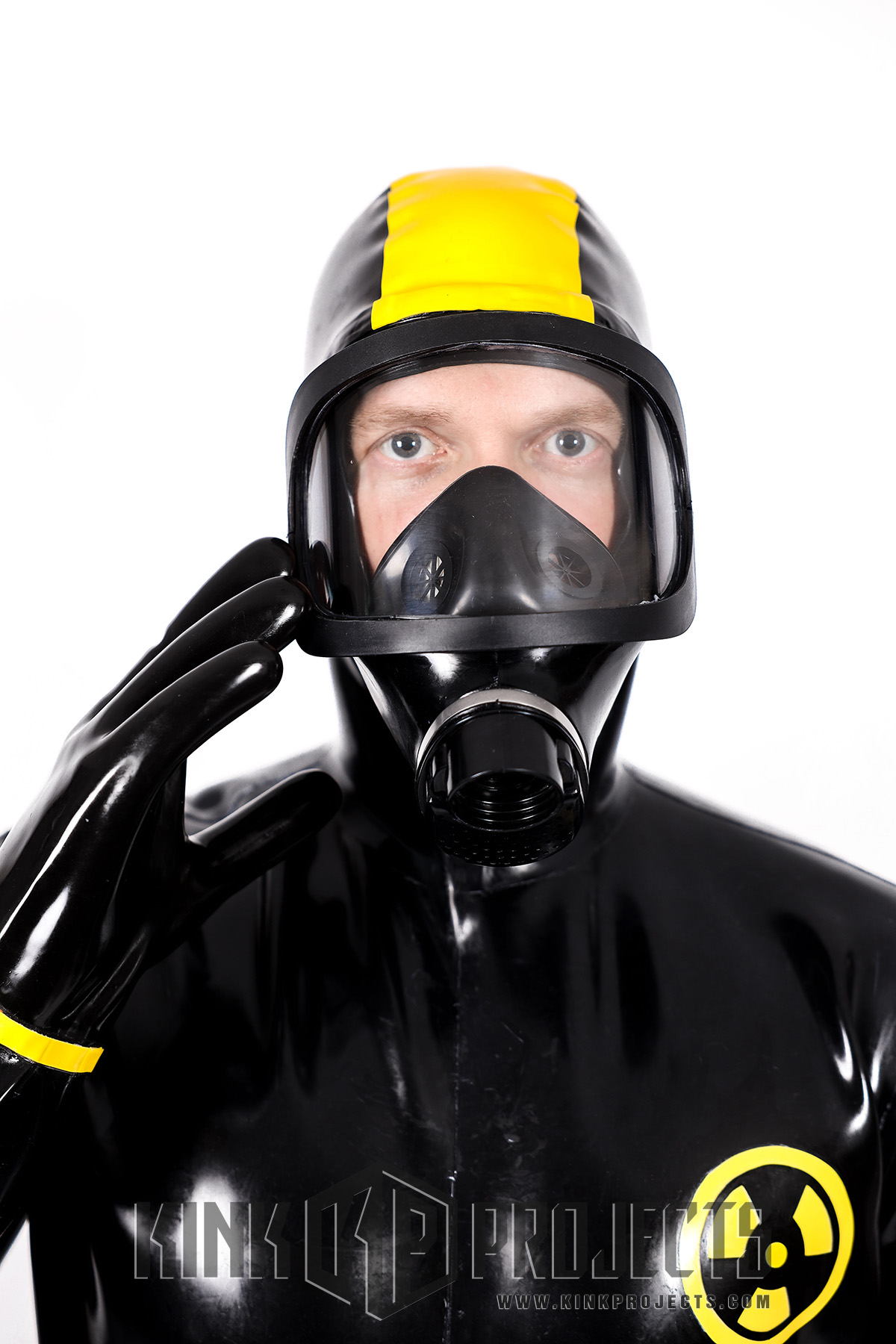 - Haz Mat style biohazard protective suit in thick 1mm latex;